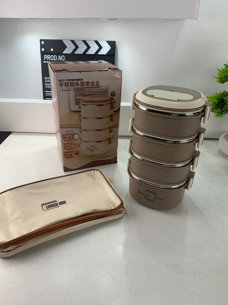 🍱✨ علبة غداء من الستانلس ستيل 4 طبقات – عملية، أنيقة وتحافظ على طعامك طازج ! ✨🍱