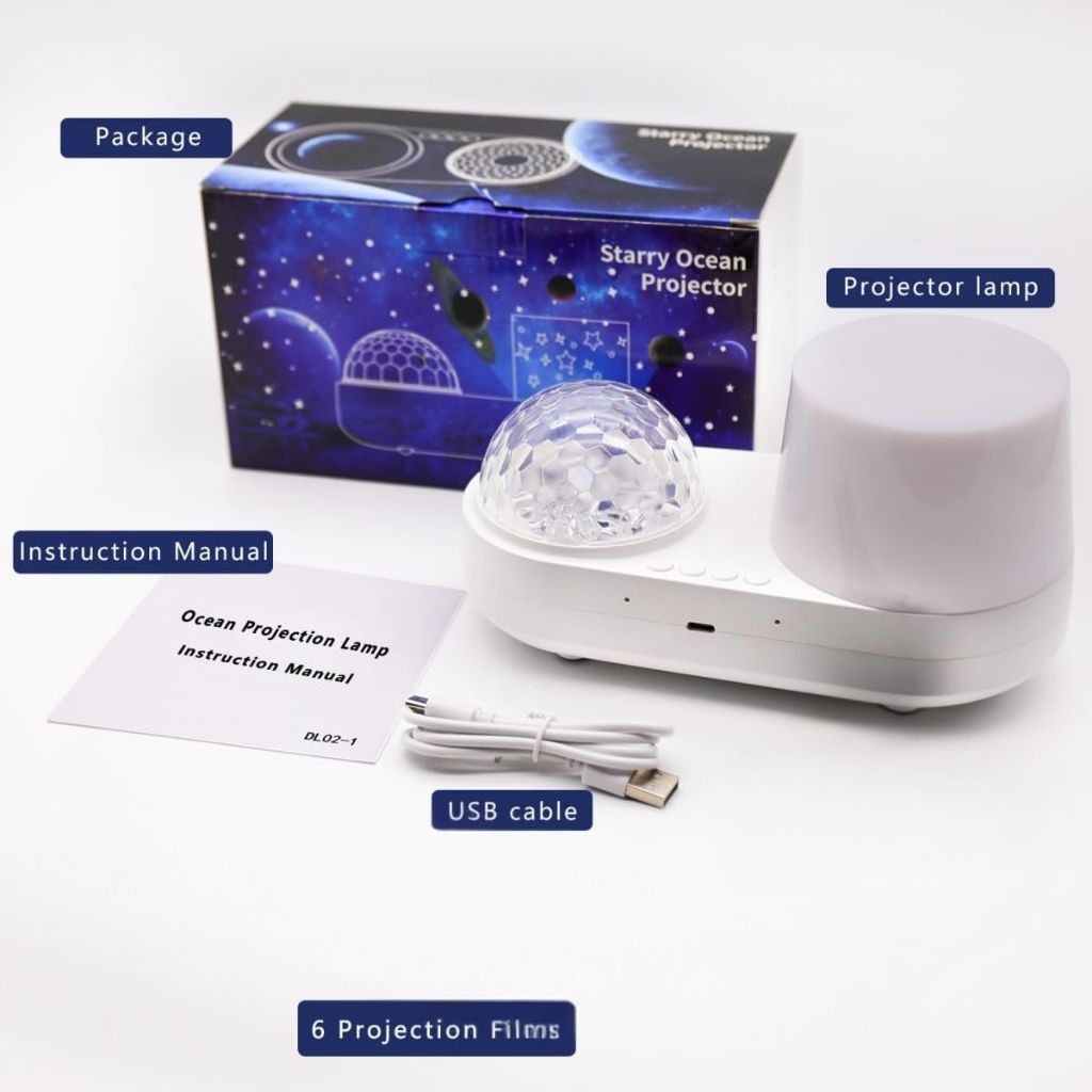 Variété de Projections : Équipé de 6 films interchangeables et offrant 10 couleurs de vagues océaniques, ce projecteur crée une atmosphère immersive et apaisante pour les enfants.Rotation à 360° : La lampe pivote sur 360 degrés, assurant une couverture complète de la pièce et une expérience visuelle dynamique.Minuterie Intégrée : Dispose d'une fonction de minuterie pour éteindre automatiquement le projecteur après une durée prédéfinie, favorisant un sommeil paisible sans interruption.Décoration Polyvalente : Idéal pour la chambre des enfants, les fêtes de Noël ou comme élément décoratif, ajoutant une touche magique à tout espace.