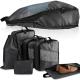 ♣ Organisez vos affaires : avec le dernier design d’un lot de 7 pièces, vous pouvez ranger tous vos accessoires de voyage indépendamment l’un de l’autre.♣ Facilité de rangement pour le voyage : vous voulez rendre plus facile pour le voyage ? Nos cubes de voyage sont parfaits pour vous avec un design en maille respirante qui offre une meilleure visibilité.Matériau fiable : les cubes de rangement pour valises sont fabriqués en tissu et en métal de qualité supérieure et sont ultra légers, résistants et faciles à ouvrir/fermer. Et il peut être utilisé pendant une longue période.Cube pratique : notre organisateur de voyage est pratique à utiliser. Vous pouvez l’utiliser pour ranger vos vêtements, chaussures, chaussettes, cosmétiques, serviettes, articles de toilette et accessoires électroniques.Nombreuses utilisations : le sac de rangement peut être utilisé pour les voyages d’affaires, les vacances en famille, la natation, le bateau, le ski, le camping et d’autres activités de plein air. Facile à laver.