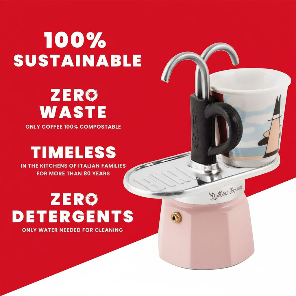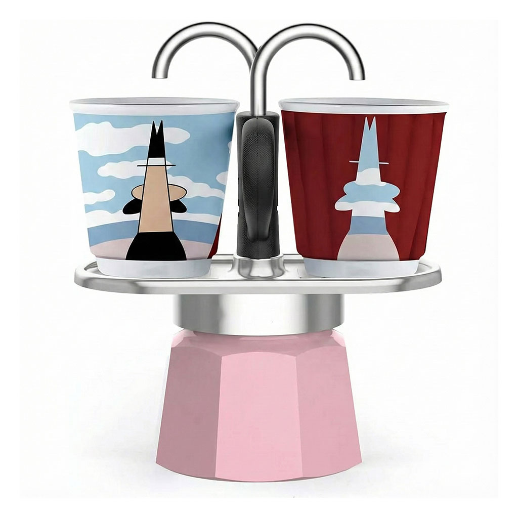 اجعل لحظة القهوة اليومية أكثر تميزًا مع هذه الكافيتير الإيطالية المصمّمة لتحضير فنجانين من الإسبريسو في نفس الوقت، وبلمسة فنية ساحرة مستوحاة من عالم الرسّام الشهير ماغريت.