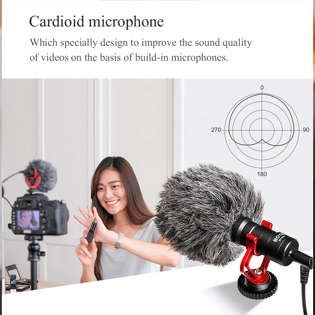 Compatibilité universelle : microphone à condensateur pour iPhone, Android, appareils photo, caméscopes, enregistreurs audio, tablettes et ordinateurs portables. Utilisation comme microphone iPhone ou microphone DSLRSon clair : avec un microphone directionnel cardioïde de haute qualité, il capture les sons vers l’avant et réduit la capture des sons sur les côtés et l’arrière, et offre un son cristallin à votre appareil d’enregistrement.Plug & Play : le BY-MM1 dispose d’un circuit spécifique qui vous permet de brancher et de jouer sans installer de piles. Il suffit de connecter BY-MM1 à votre appareil photo via le câble TRS vers TRS de 3,5 mm inclus, ou de le connecter à votre smartphone via le câble TRS vers TRRS de 3,5 mm fourni et commencez.Réduction du bruit : un support résistant aux chocs et une structure de suspension peuvent minimiser efficacement les vibrations indésirables et le bruit de manipulation. Comprend un pare-brise en fourrure, il bloque la plupart du vent et du bruit de l’environnement.