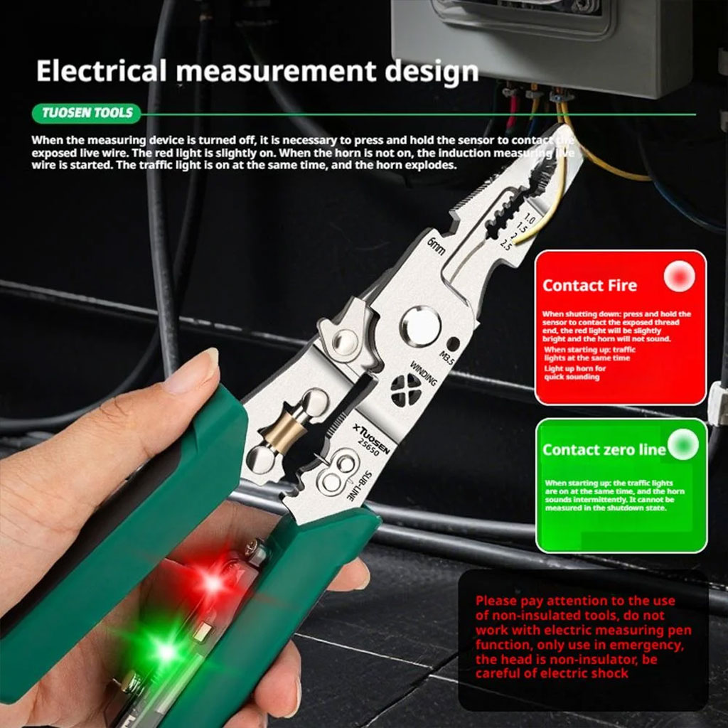 🛠️ كماشات نزع الأسلاك متعددة الوظائف مع كاشف توتر — الأداة الأساسية لكل كهربائي