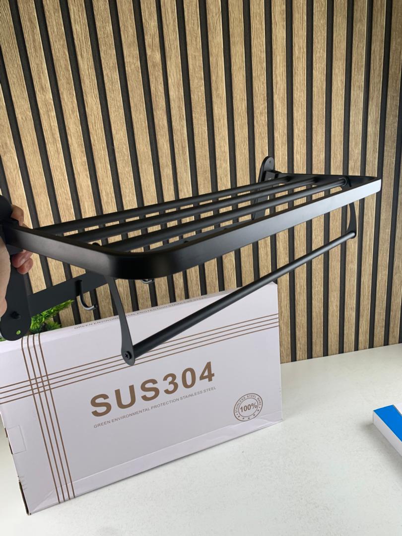 🛁✨ رفّ مناشف جداري مزدوج من الفولاذ المقاوم للصدأ – تصميم فاخر وأداء متين 🖤