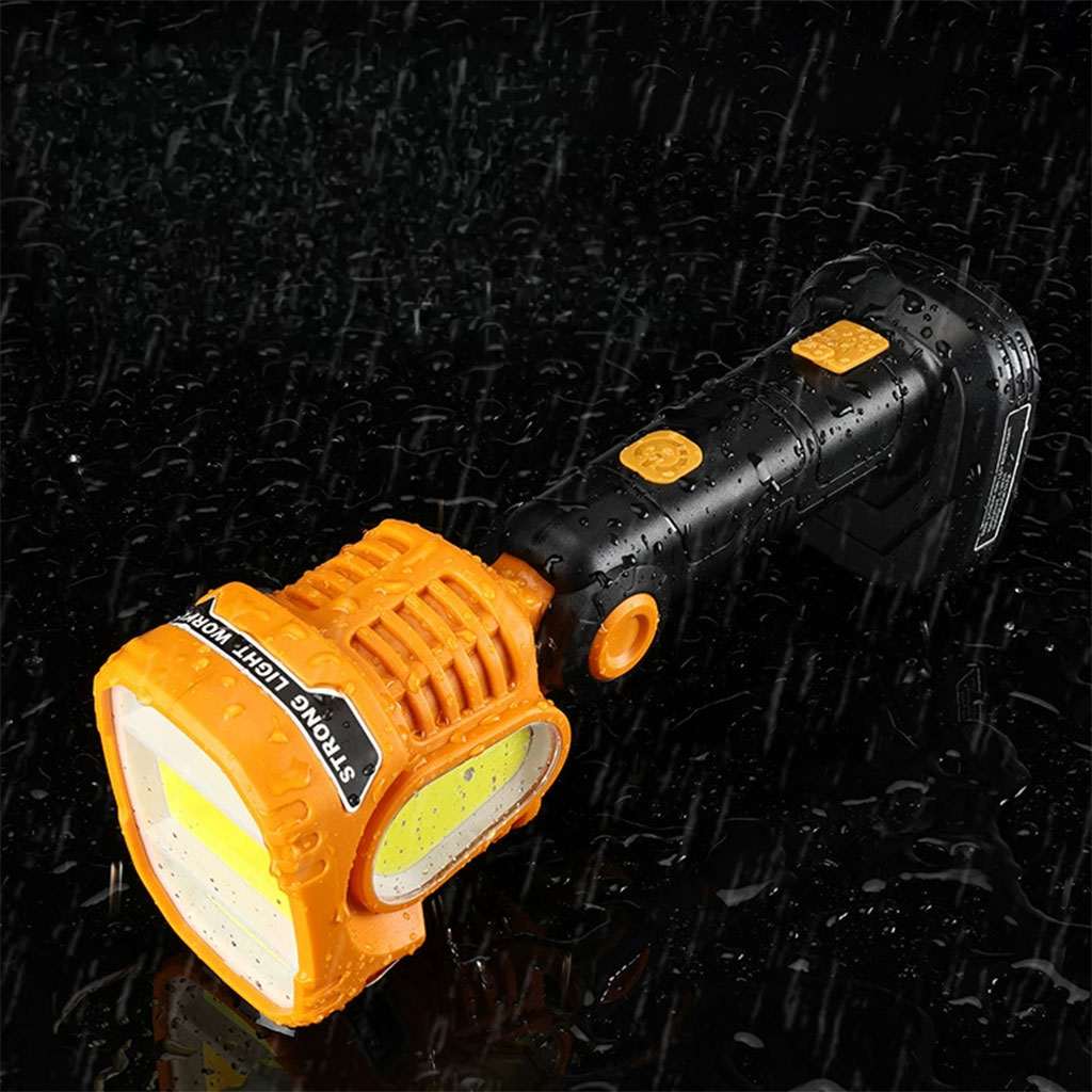مصباح يدوي LED مفصلي وقابل للشحن عبر USB، خيار مثالي للِّي يحبّو الوظائف المتعددة والإنارة الدقيقة. التصميم الواجهـي يسمح بتوجيه الضوء مباشرة قدّامك، مناسب للتخييم، الترميمات في الدار، الطوارئ، أو العمل في الليل.