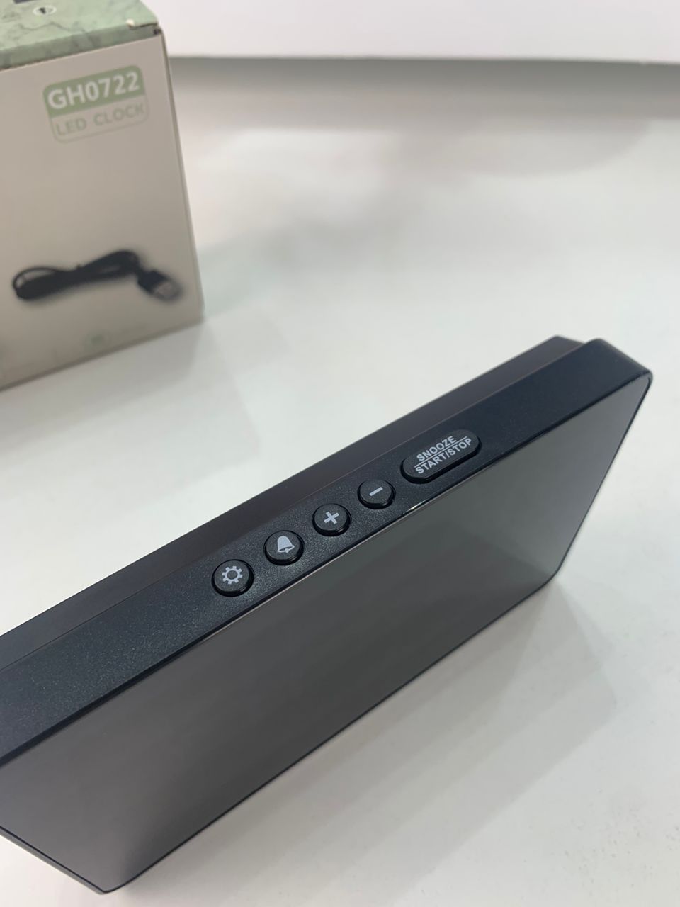Grand Écran LED de 7,2 Pouces : Affichage clair de l'heure, de la date et de la température, facilitant la lecture même à distance.Double Alarme avec Fonction Snooze : Permet de programmer deux alarmes distinctes, avec une option de répétition pour quelques minutes de sommeil supplémentaires.Luminosité Réglable sur 5 Niveaux : Ajustez la luminosité de l'écran selon vos préférences pour un confort visuel optimal, de jour comme de nuit.Affichage du Jour et de la Date : Fonction calendrier intégrée affichant le jour de la semaine et la date, pour une meilleure organisation quotidienne.Design Moderne et Polyvalent : Idéal pour la chambre à coucher, le salon ou le bureau, ajoutant une touche élégante à votre intérieur.