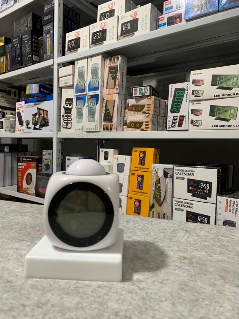Et le temps actuel sera projeté sur n’importe quelle surface plane pendant environ 10 secondes. En outre, la tête de projection peut être déplacée