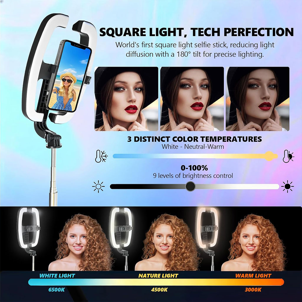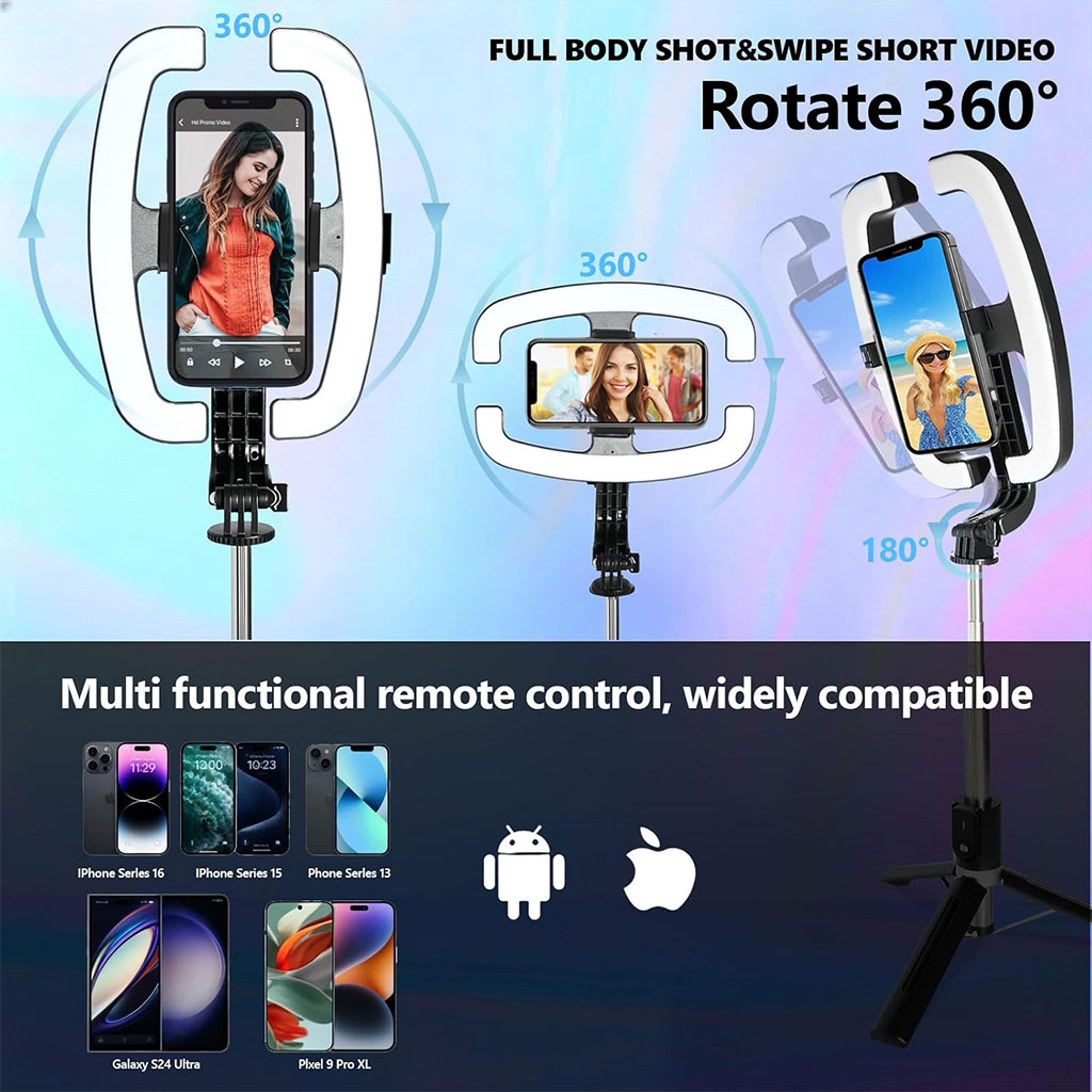🌈 3 ألوان للإضاءة🔆 9 درجات للسطوع🔄 إمالة حتى 180° باش تحدد الزاوية لي تحبدوران 360° وإمالة 270° للضوءمثالي للتصوير، الميكاب، البورتريه، المحتوى… الإضاءة دايما تطلع نظيفة ولامعة!