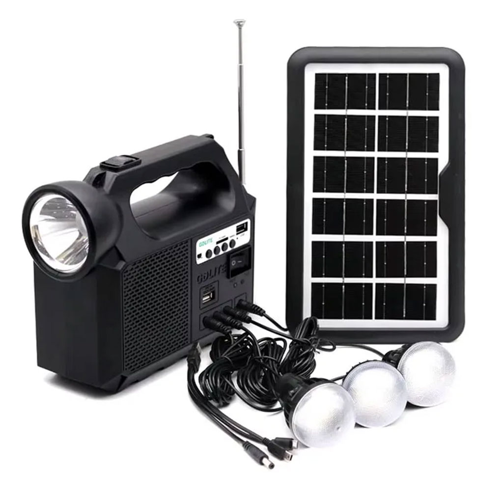 🔆 نظام الإنارة بالطاقة الشمسية GDLITE GD8017نظام GDLITE GD8017 هو حلّ مثالي للإنارة الذاتية، مناسب للمناطق الريفية، التخييم، الطوارئ، ولاستعمالات المنزل وقت انقطاع الكهرباء. يجمع ما بين الإنارة LED، راديو FM، مكبّر صوت، وشحن USB… كامل هذا في جهاز واحد صغير، عملي وسهل النقل. بفضل اللوح الشمسي تاعو، يشحن نهار كامل ويعطيك ساعات طويلة من الضوء، الموسيقى، وشحن الهاتف… بلا كهرباء وبلا مصاريف. يجي معه 3 لمبات LED تركّبهم بسهولة، ويقدر يخدم حتى كـ باور بنك صغير باش تشحن تليفونك ولا أي جهاز صغير عبر USB.✨ المميزات الرئيسية🔋 طاقة شمسية 100%لوح شمسي 9V يشحن البطارية الداخلية نهار كاملاقتصاد في الطاقة + خدمة بلا انقطاع💡 إضاءة LED قوية3 لمبات LED :2 × لمبة 3W1 × لمبة 2Wمناسب للبيت، للبرا، للحديقة، للخيمة…📻 راديو FM مدمجتسمع المحطات المحلية وين ما تكون🔊 مكبّر صوت / Music Playerيخليك تشغل الموسيقى وقت الرحلات أو في الدار🔌 مخارج USB متعددةتشحن الهاتف والأجهزة الصغيرةمخرج 6V باش تخدم حتى 4 أجهزة في نفس الوقت🔦 مصباح يدوي مدمجمفيد في المشي، البحث، الطوارئ🔋 بطارية قويةبطارية داخلية 6V 4Ahتدوم ساعات طويلة بعد الشحن🚚 سهل الحمل والاستخدامتصميم صغير وخفيفمناسب للسفر، للتخييم، وللمناطق بلا كهرباء📊 المواصفات التقنيةالطراز : GDLITE GD8017عدد اللمبات : 3 (2×3W + 1×2W)البطارية : 6V 4Ah Lead-Acidالطاقة الشمسية : لوح 9V (3–7W)وقت الشحن باللوح الشمسي : 13–15 ساعةالمخرجات :DC 6V (حتى 4 أجهزة)USB لشحن الهاتفالتوتر الكهربائي : 110–240V، 50/60Hzالوظائف :إضاءة LEDراديو FMمكبّر صوتشحن USBمصباح يدوي🌞 اختار GD8017… ضوء، موسيقى، وشحن كامل بالطاقة الشمسية!