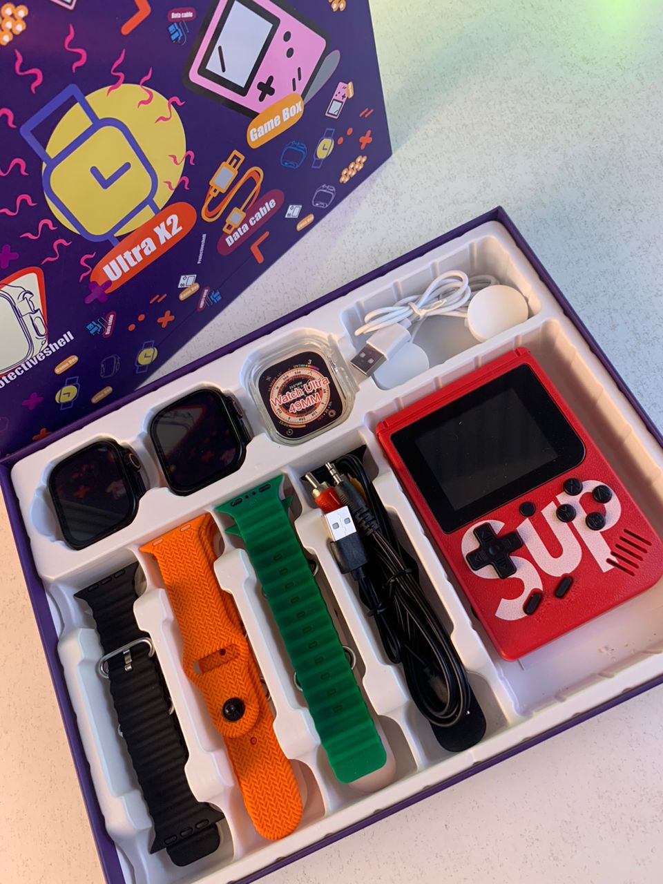 طقم ساعتين Ultra X2 مع 7 أساور وجهاز ألعاب كلاسيكي يحتوي على 400 لعبة
